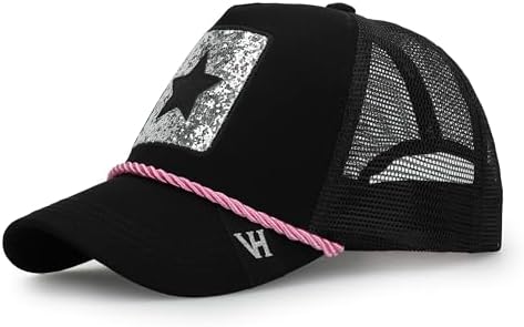 VINTAGE HAVANA Black Trucker Hats Women | Mesh Adjustable Snapback Hat | Men & Women Trendy Fashion Baseball Cap