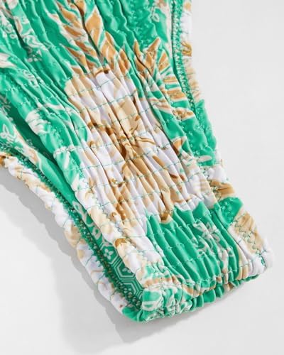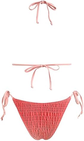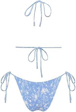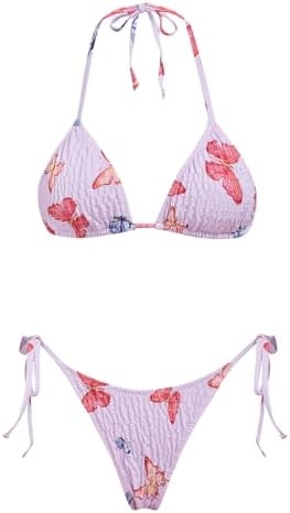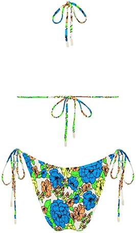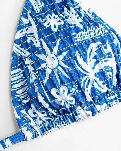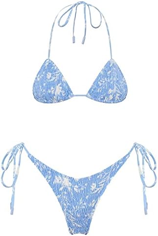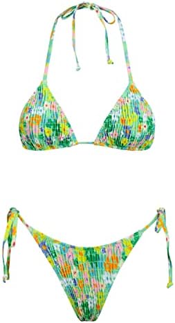 VOLAFA Women's Triangle Bikini Set String Swimsuit Print Tie Smocked Ruched Two Piece Bathing Suit