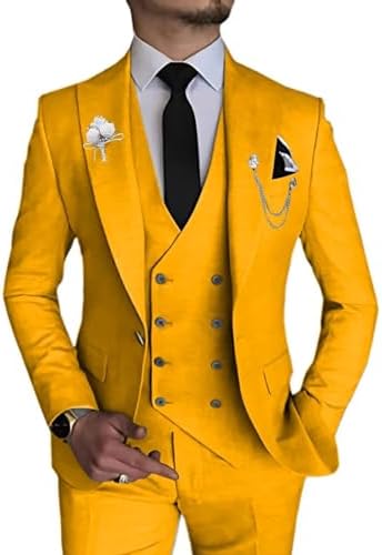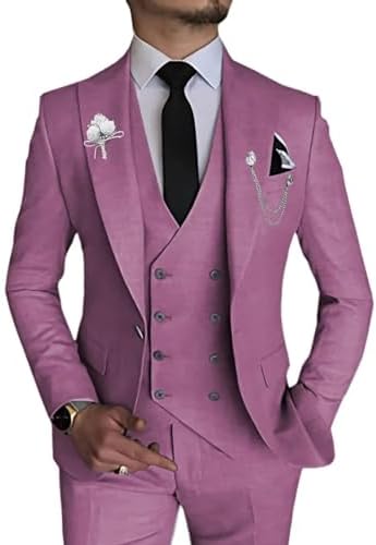 Wangyue Men's 3 Piece Slim Fit Suit Double Breasted Suit Men Formal Suit for Wedding Prom Dinner Party