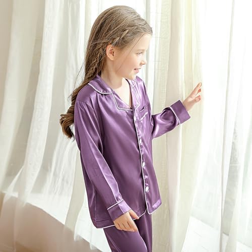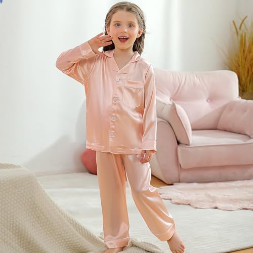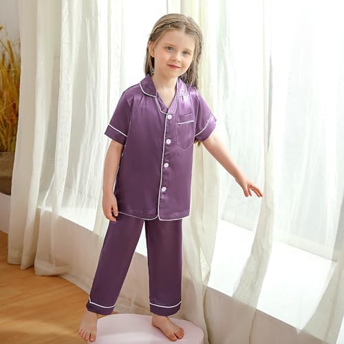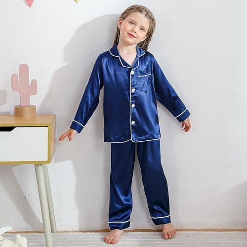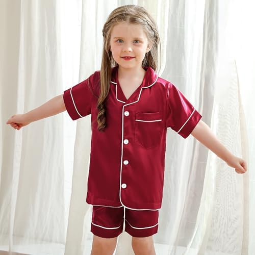 Weixinbuy Pajama Set for Kid Baby Boy Girl Button-up Silk Pajama Sleepwear Nightwear Loungewear Clothes Set Gifts for Kids