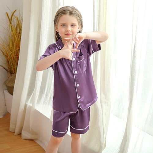 BINIDUCKLING Toddler Button Up Pajamas Summer Pjs for Girls Boys 18 Months - 12 Years