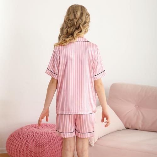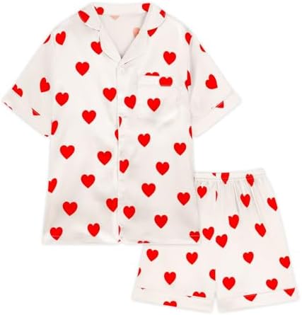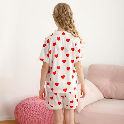 Summer Pajamas for Girls – Stripe & Glittering Heart PJS Pal Cute Jammies Set Big Kids Size 6-16