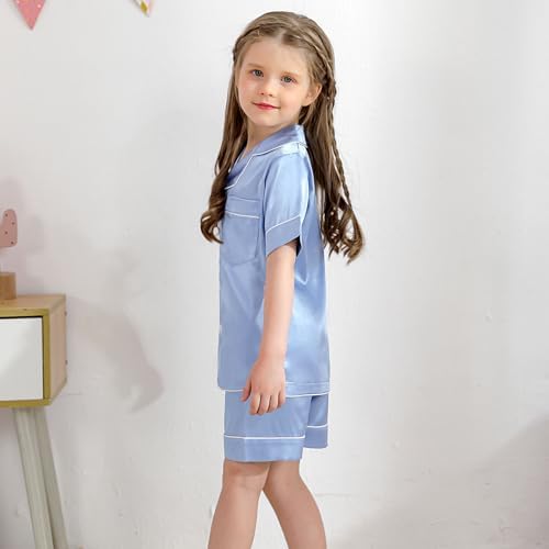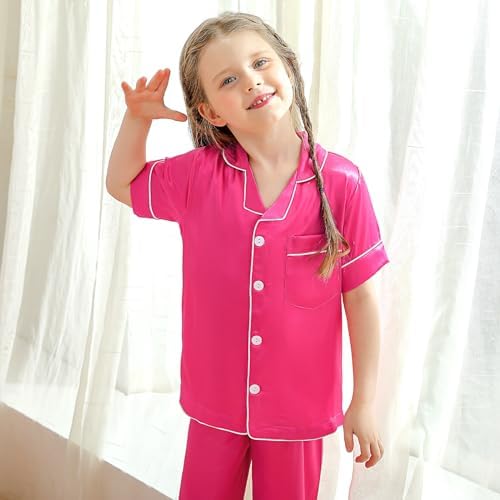 Schbbbta Girls Womens Pajamas, Satin Silky Pjs Set Kids 2Pcs Button-Down Nightwear Sleepwear Gift for Mommy and me