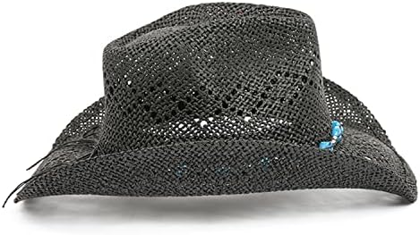 Western Cowgirl Hat, Straw Cowboy Hat for Women with Shapeable Brim, Beaded Hearts Trim, Shapeable Cowboy Hat