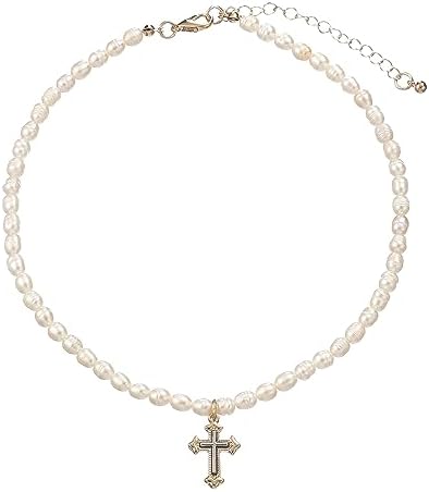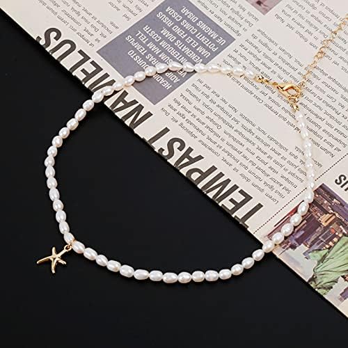wgoud Natural Freshwater Pearl Choker Necklace for Women, Trendy 14K Gold Plated Pearl Necklaces Handmade Jewelry Gift