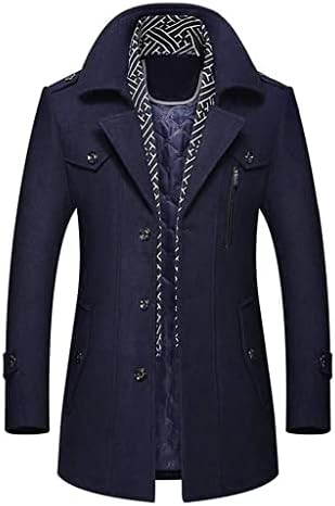Winter Wool Coat Men Fashion Middle Long Scarf Collar Cotton-padded Thick Warm Woolen Coats Male Trench Coat Overcoat