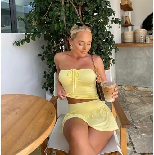 Women 2 Piece Mini Skirts Set Summer Sexy Y2k Going Out Sleeveless Strapless Crop Tops Low Waist Short Skort Skirt