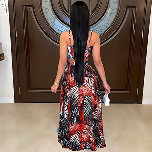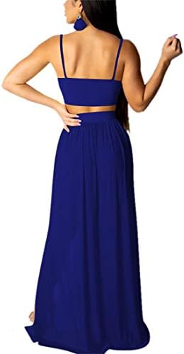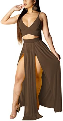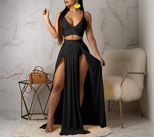 Women Sexy 2 Piece Outfits Dress Chiffon Strap Deep V Neck Bra Crop Top High Split Maxi Dresses Skirt Set…