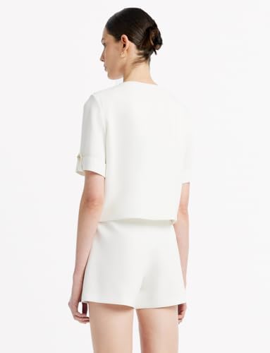 Women's 2 Piece Suit Sets White Acetate Short Sleeve Blazer Jacket and Skirt Shorts Business Casual Outfits