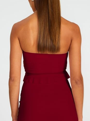 Women's Asymmetrical Ruffle Hem Strapless Tube Top and Skirt Matching Set Summer 2 Pieces Outfits