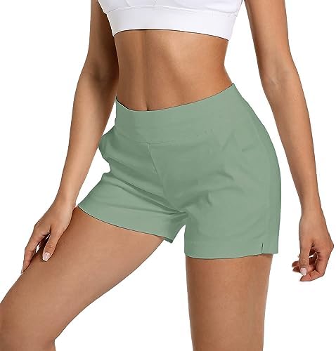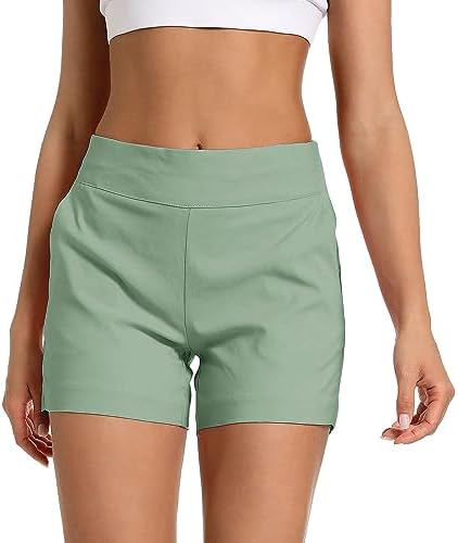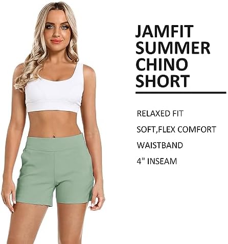 Women's Chino Shorts - 4" Inseam, High Waisted, Elastic, Summer Casual Shorts with 2 Front Pockets