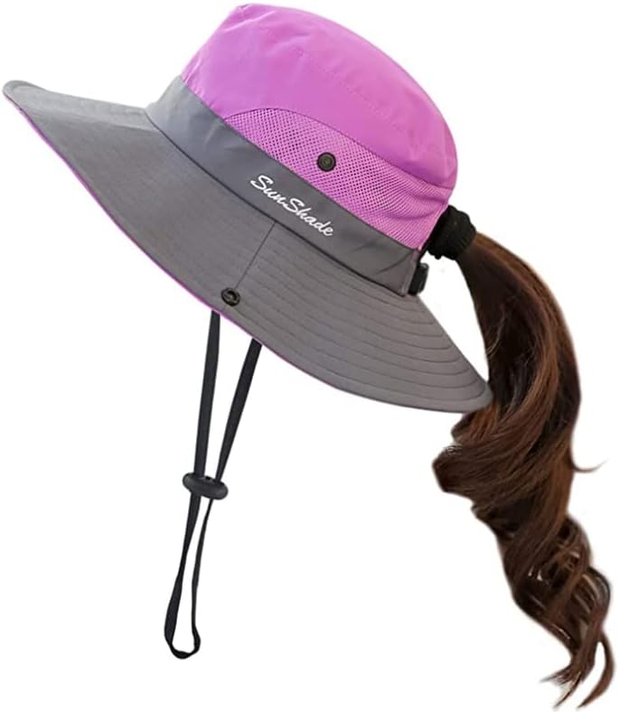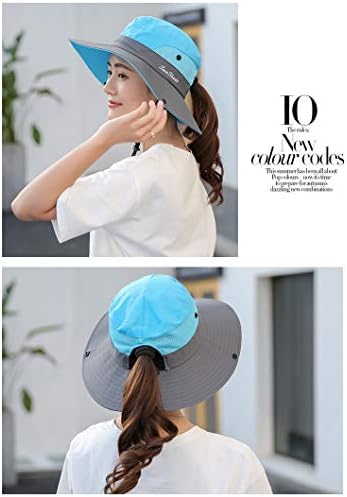 Women's Outdoor UV-Protection-Foldable Sun-Hats Mesh Wide-Brim Beach Fishing Hat with Ponytail-Hole
