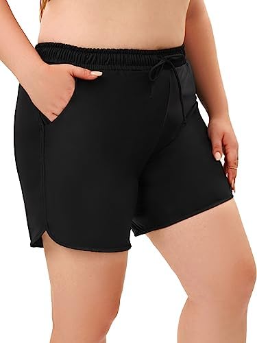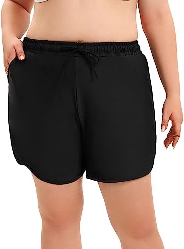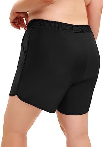Women's Plus Size Swim Shorts High Waisted Bathing Suits Bottoms Long Swimsuit Tankini Trunks with Pockets