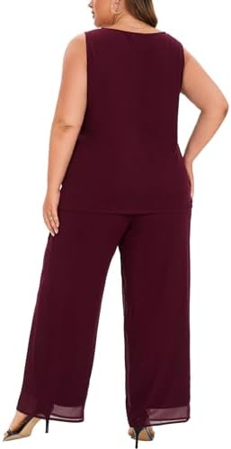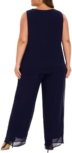 Women's Plus Size Wedding Pant Suits 3 Piece Chiffon Party Outfit for Mother of The Groom Bride Evening Gowns