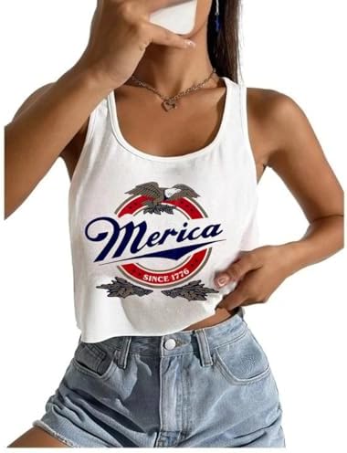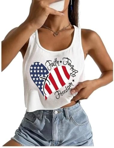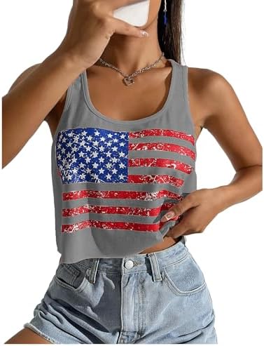 Women's Sexy American Flag Crop Tank 4th of July Patriotic Sleeveless Tee Tops