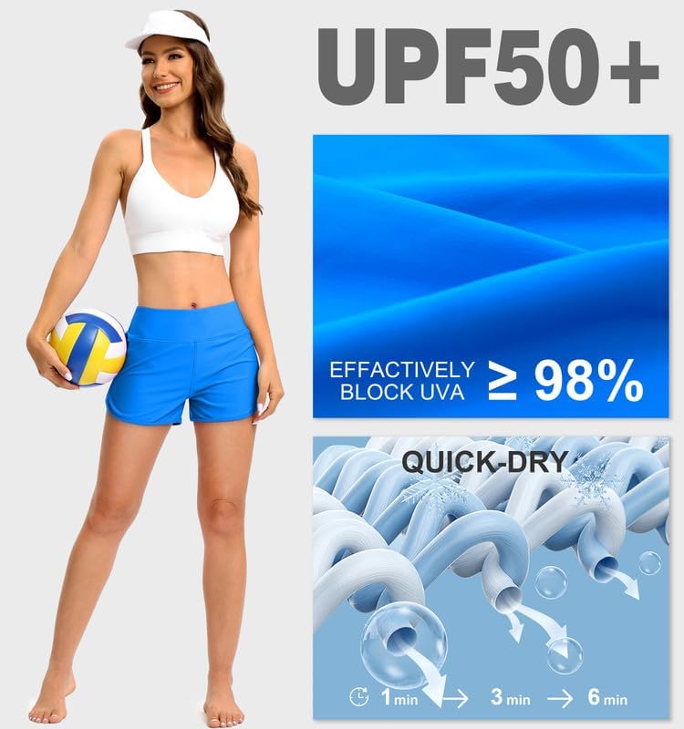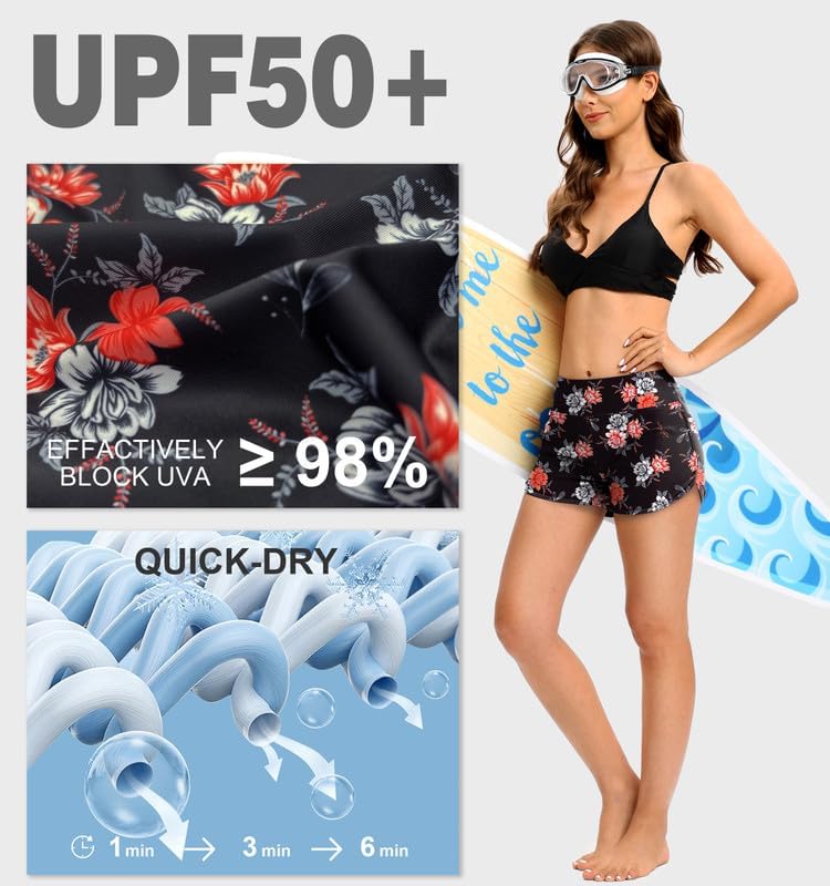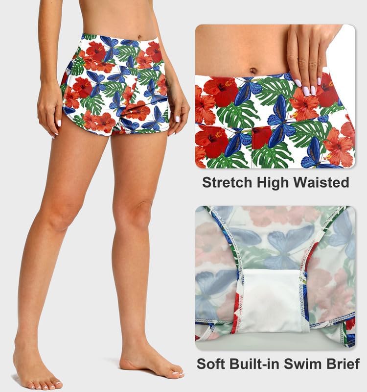 Women's Swim Board Shorts with Pockets High Waisted Tummy Control Swimsuit Bathing Shorts for Women with Liner