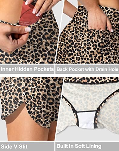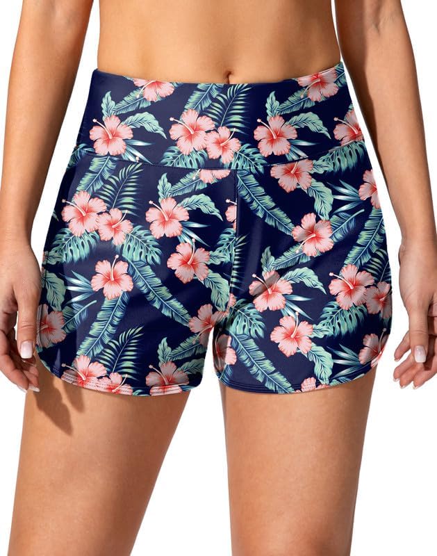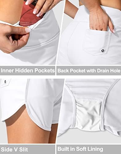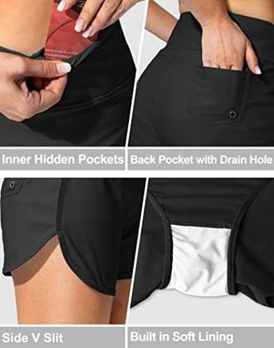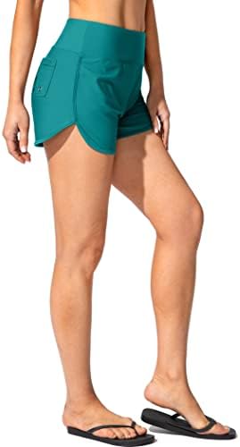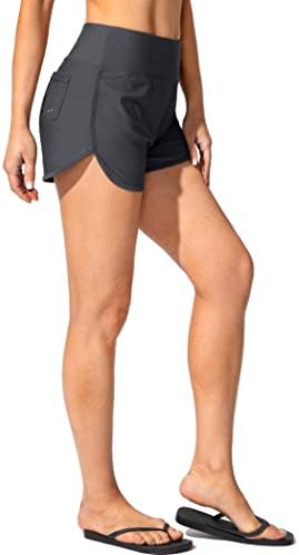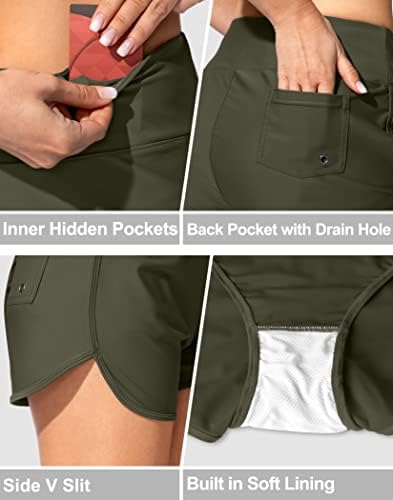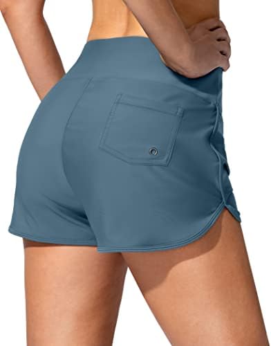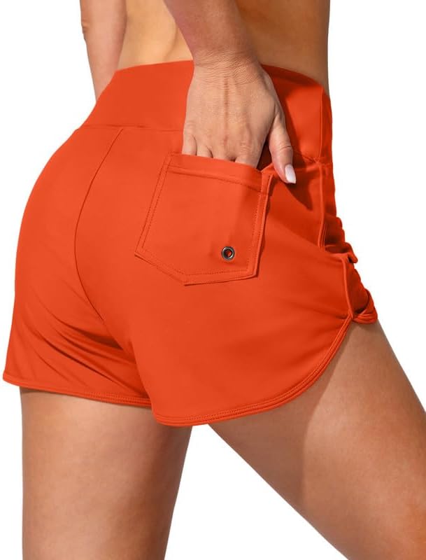 Women's Swim Shorts with Pockets High Waisted Tummy Control Board Swimsuit Bathing Shorts for Women with Liner