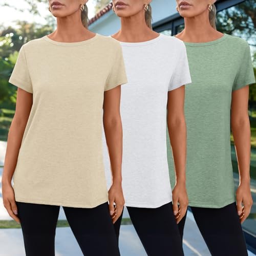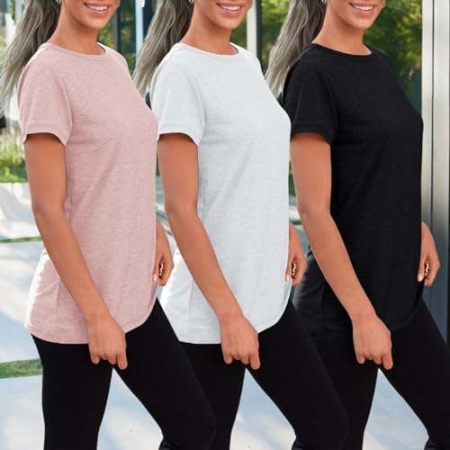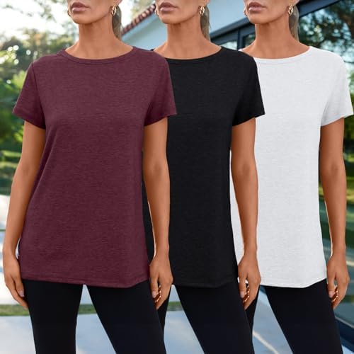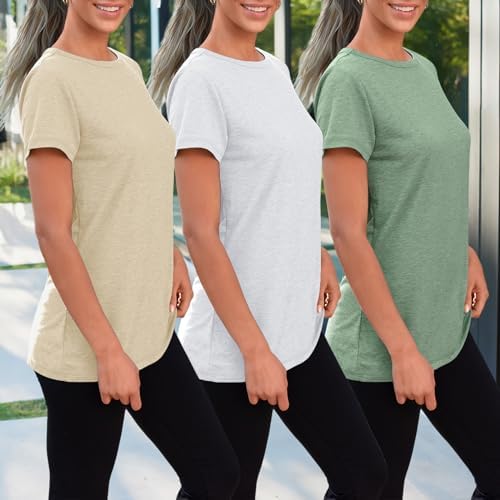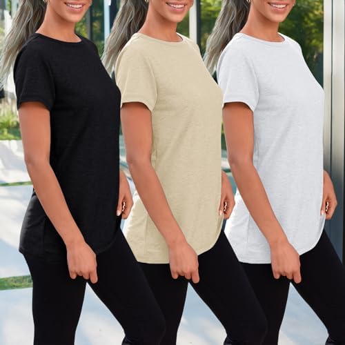 Womens 3 Pack T Shirts Basic Short Sleeve Tees Crewneck Fashion Tops Loose Fit Lightweight Casual Summer Clothes 2024