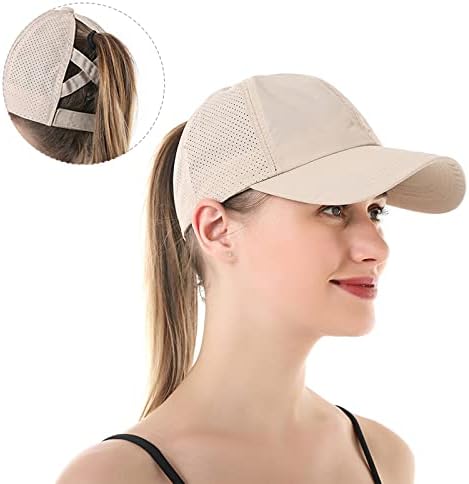 Womens Criss Cross Ponytail Baseball Cap Adjustable High Messy Bun Ponycap Quick Drying Hat