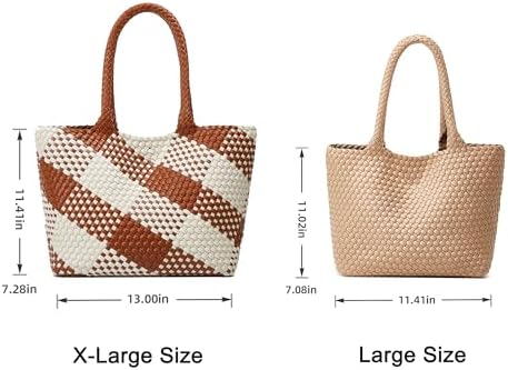 Woven Tote Bag Womens Purse: Vegan Leather Shoulder Handbags - Fashion Summer Beach Tote Bags - Large Travel Totes