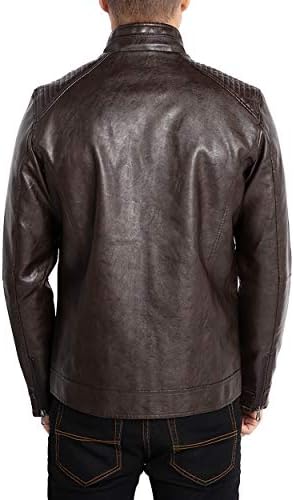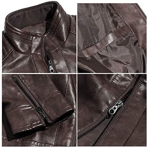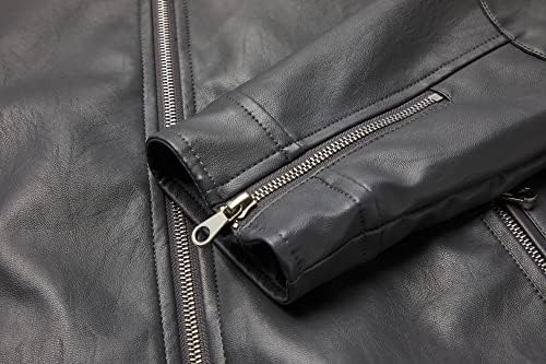 WULFUL Men's Stand Collar Leather Jacket Motorcycle Lightweight Faux Leather Outwear