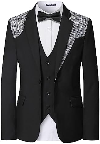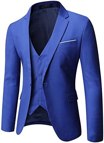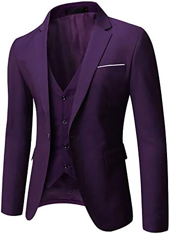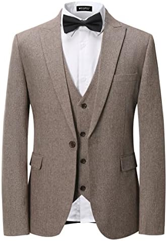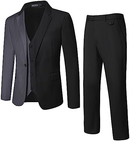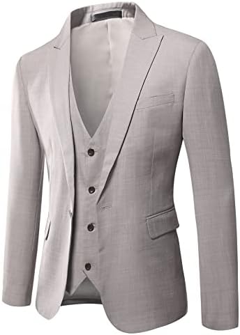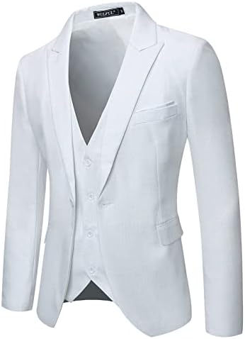 WULFUL Men’s Slim Fit Suit One Button 3-Piece Blazer Dress Business Wedding Party Jacket Vest & Pant