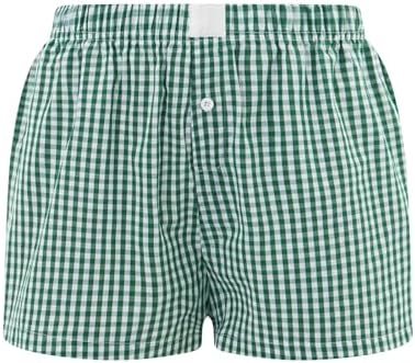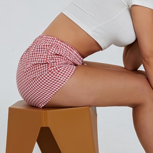 Y2k Plaid Shorts for Women Casual Elastic Waist Aesthetic Lounge Bottom Baggy Pajama Shorts Boxers Sleepwear