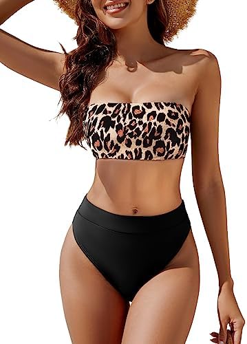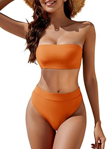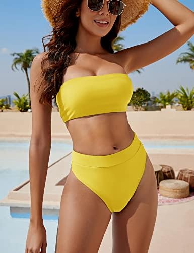 YACUN Women's High Waisted Bikini Swimsuit Two Piece Strapless Bandeau Cheeky Bathing Suits