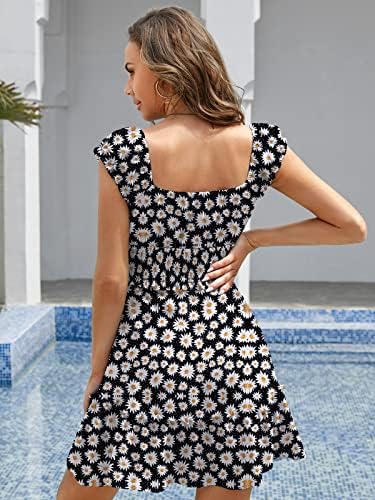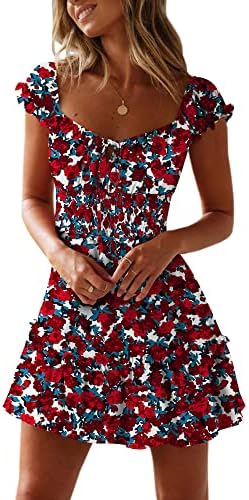 YOBECHO Women's Summer Ruffle Sleeve Sweetheart Neckline Printing Dress Mini Dress