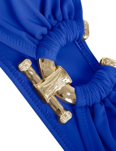 ZAFUL Metal Ring Bandeau Bikini Set Tie Side Bathing Suit High Cut 2 Piece Swimsuit Cutout Swimwear