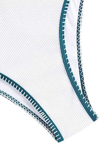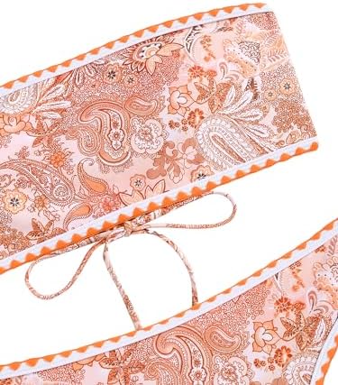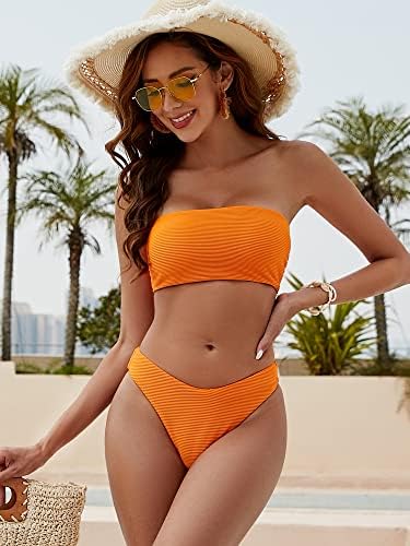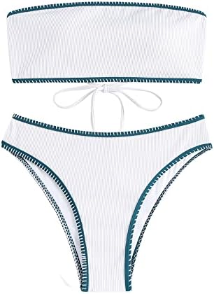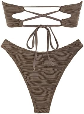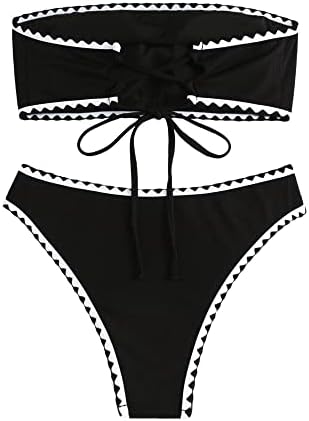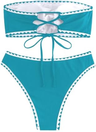 ZAFUL Women Strapless Wave Bandeau Bikini 2 Piece Swimwear Cheeky Solid Lace up Bathing Suits