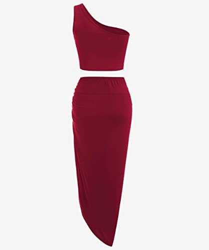 CFLONGE Women's 2 Piece Outfits Casual Sleeveless Halter Crop Top and Draped Ruched Skirt Solid Set for Cocktail Party