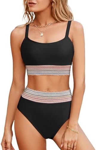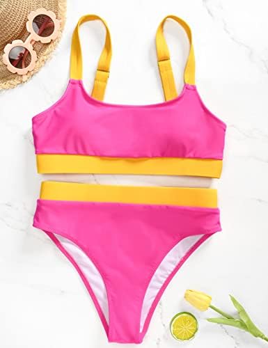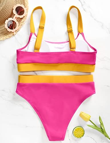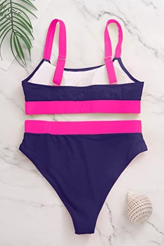 ZINPRETTY Women High Waisted Bikini Set Color Block Swimsuit 2 Piece High Cut Bathing Suit Tummy Control Teens Cheeky